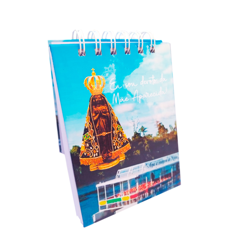 Bloco capa dura com imagem de Nossa Senhora, da balsa e do Rio Paraíba do Sul. 90 folhas em branco.