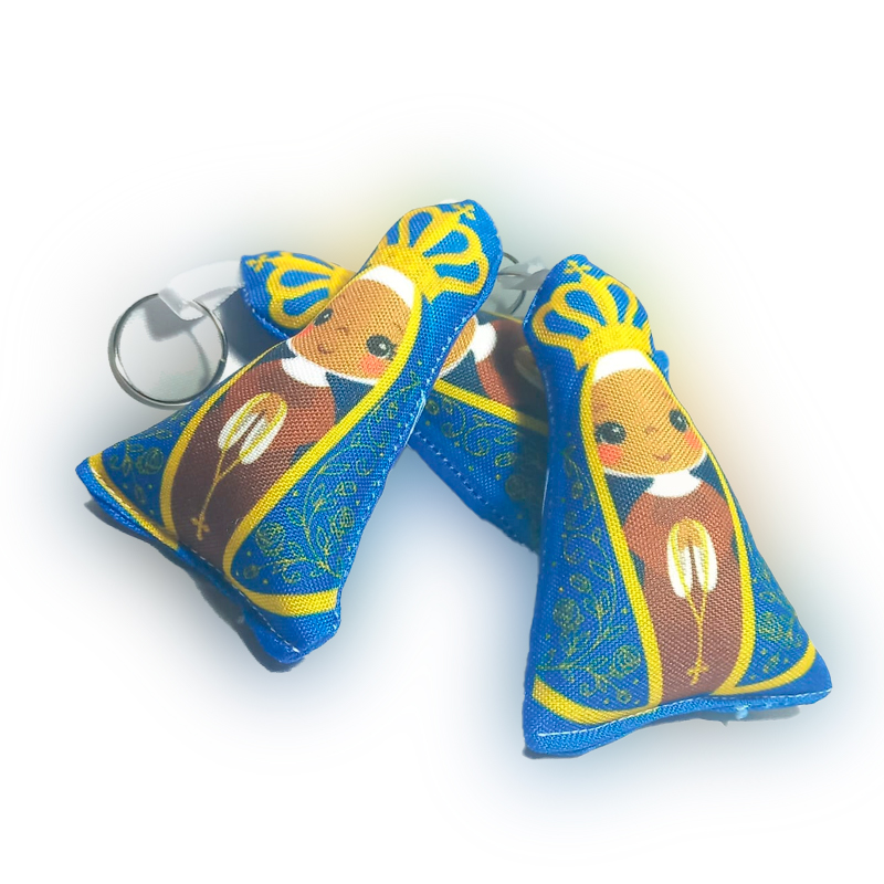 Chaveiro almofadado, com imagem de Nossa Senhora na frente e no verso passeio de balsa.